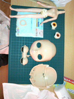 パーツを全部ばらばらにして、痛んでいたアイチェンジの紐も取り換えようと切断しました。