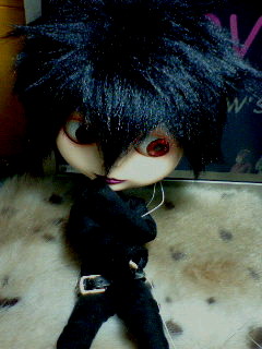 まず、烏クンのピン撮りから始めたんですが、ブライスらしくないブライスで、なんともホラー臭漂う彼に、こんなポップでちょっとレトロな感じもある柄が似合うのか?と思いつつ写真をとってみると、なんともまぁ、『腐ってもブライス!!』。よく似合いました(笑)逆にピュレット(デフォルトからいじっていない)だと似合わないんだろうなぁ…とか思いました。ピュレットさんにはよく、イメージを裏切られます。